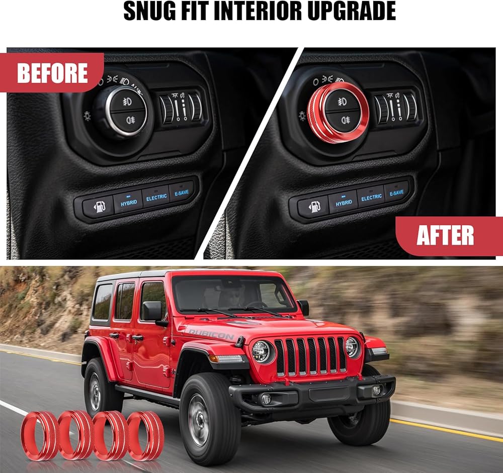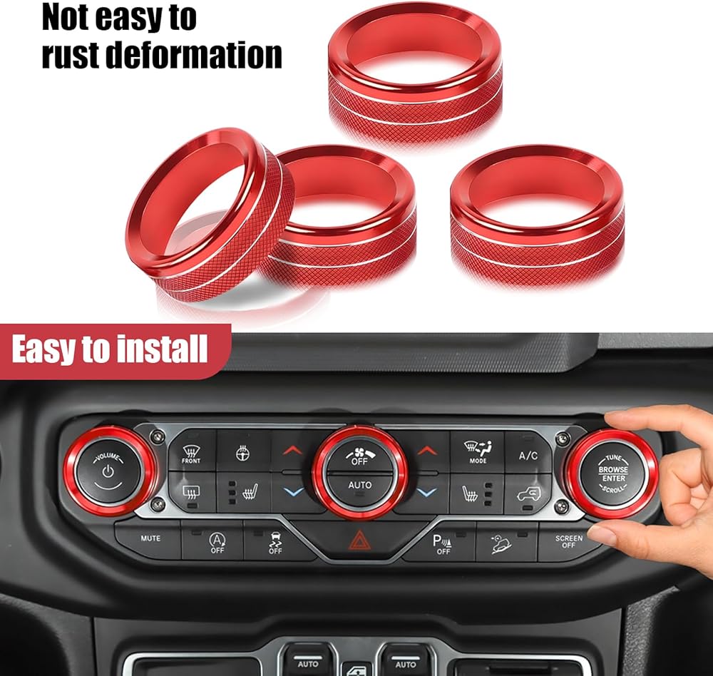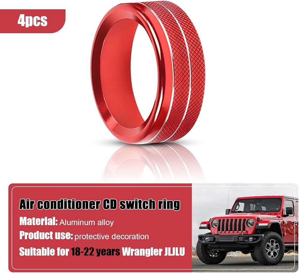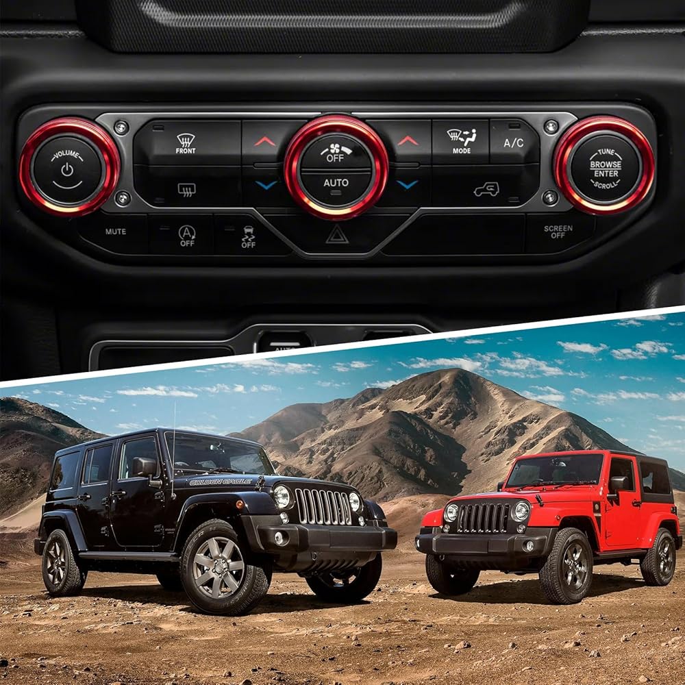 Automotive air conditioning switch knob cover with aluminum alloy finish cover, compatible with 2018-2023 Wrangler JL JLU and 2020-2023 Gladiator.