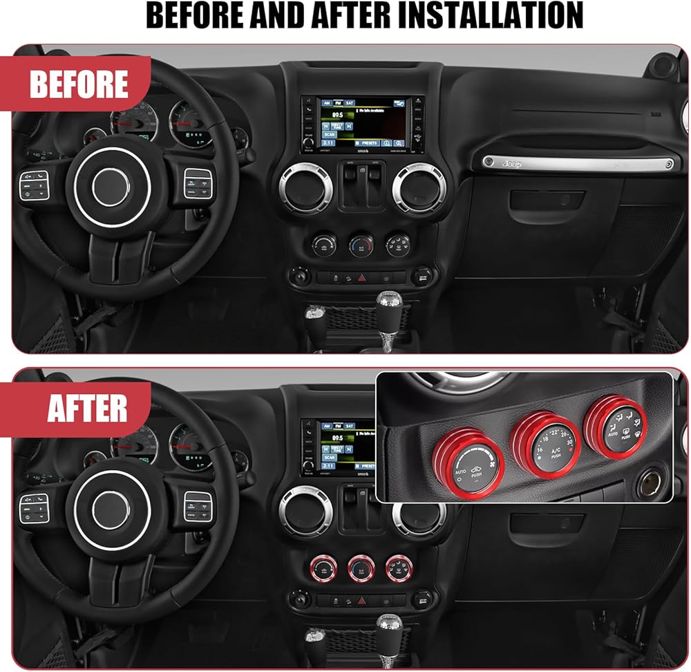 2.Material:High quality CNC aluminum alloy anodized coating, durable, light weight. Protect your headlights and A/C switch buttons from corrosion, rust and scratches.
