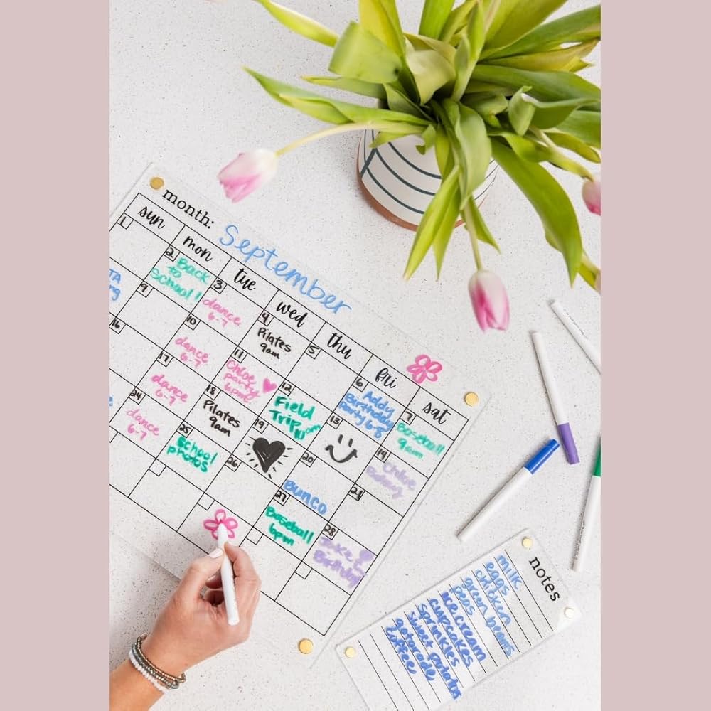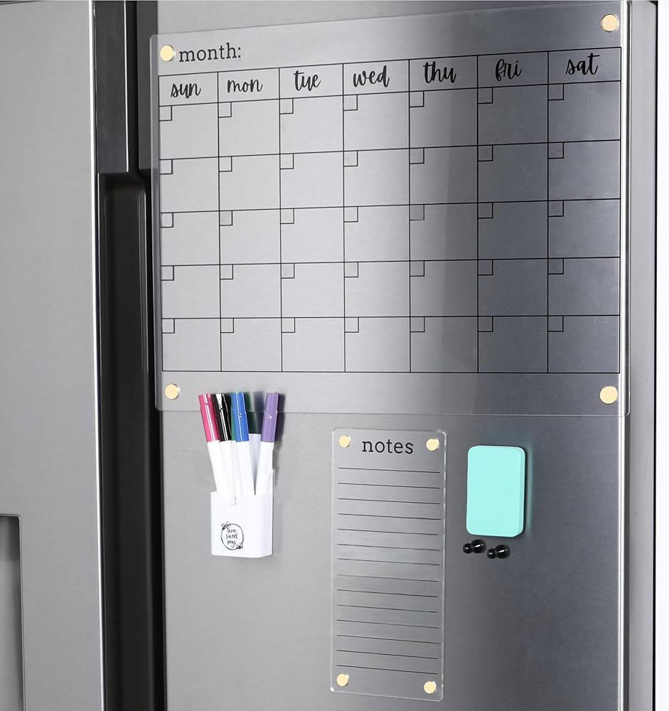 Secure and Versatile - Our magnetic acrylic calendar features strong neodymium magnets to hold it securely in place, and silicone stickers to prevent sliding. Plus, a convenient acrylic notepad for shopping lists, to-do's, and notes. Keep your life on track with style!