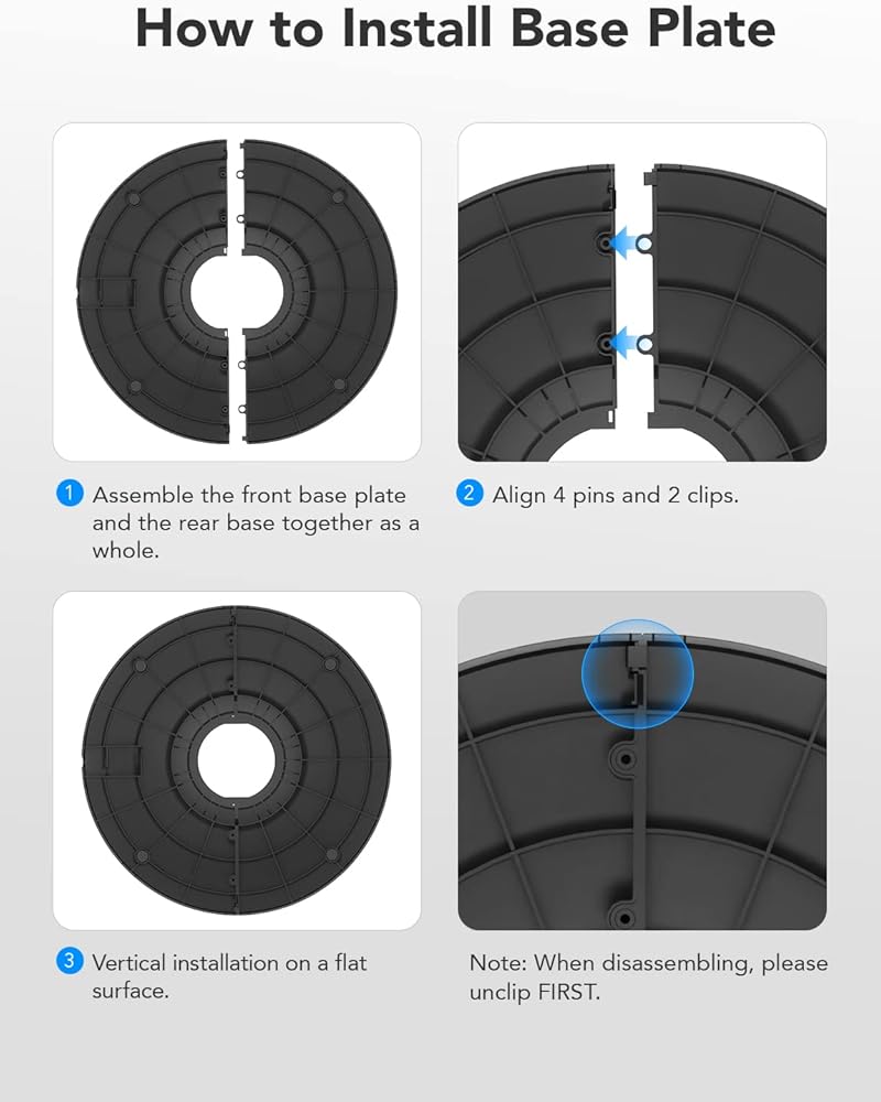 Tips for Use: When installing the base, make sure that the 4 pins of one half are inserted vertically into the slots of the other half. And don't forget to install the stand. Then enjoy your Govee Life 42" smart tower fan. (5Ghz WiFi is not supported)