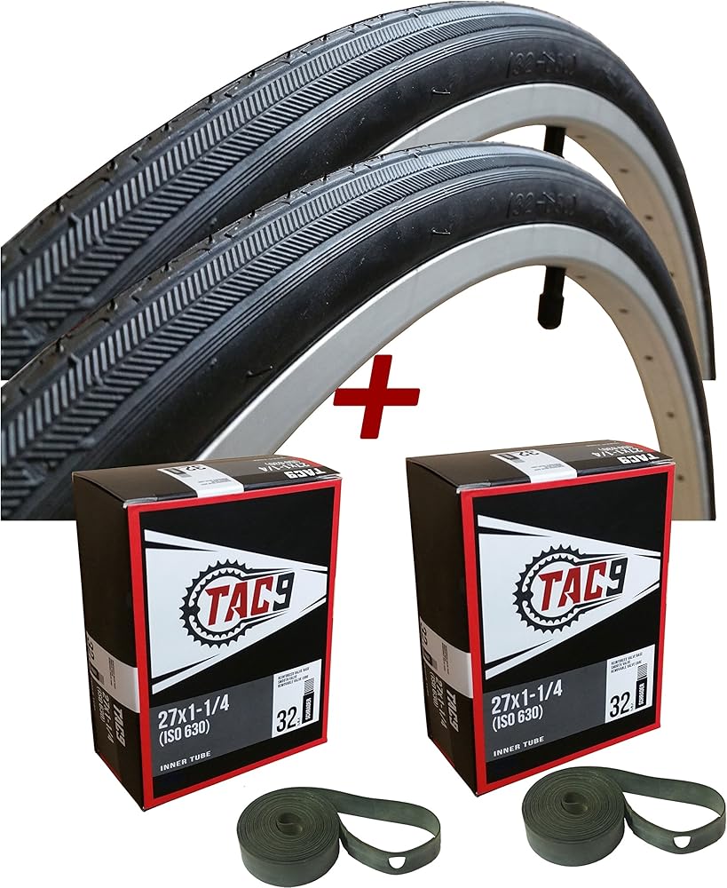 Our TAC9 Kenda K35 tire is manufactured by Kenda. It's a 27"x1-1/4" wire bead tire that is a perfect replacement for some of the older steel frame road bikes like Fuji, Sears, Peugeot, Schwinn and others. Look on the side of your tire for the proper size, MOST IMPORTANTLY the ISO 630. (SEE IMAGES) The ISO maybe preceded with a 2 digit number and a dash which indicates the width of the tire. The "630" is the rim diameter. If your existing tire has any other ISO number then this tire will NOT fit on your rim. The included inner tube has a 32mm (1.25") long schrader valve and the rim strip is 13mm (1/2") wide and made of rubber.