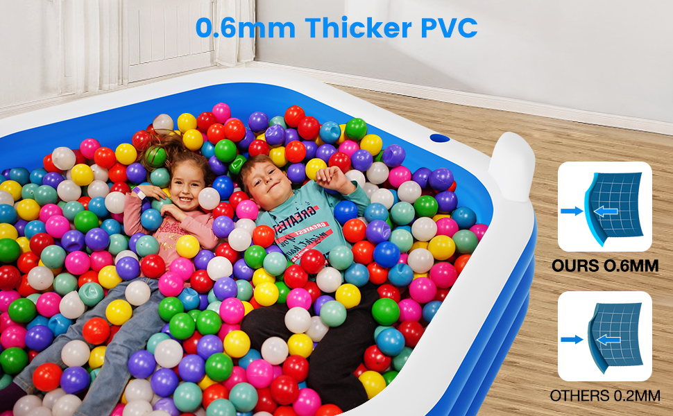 Safety and Security: The swimming pool is made of 0.4mm thick PVC that is lead-free and BPA-free. Without any toxic chemicals, and meet meets the standards of international children's toys. It is safe for everyone you loved
