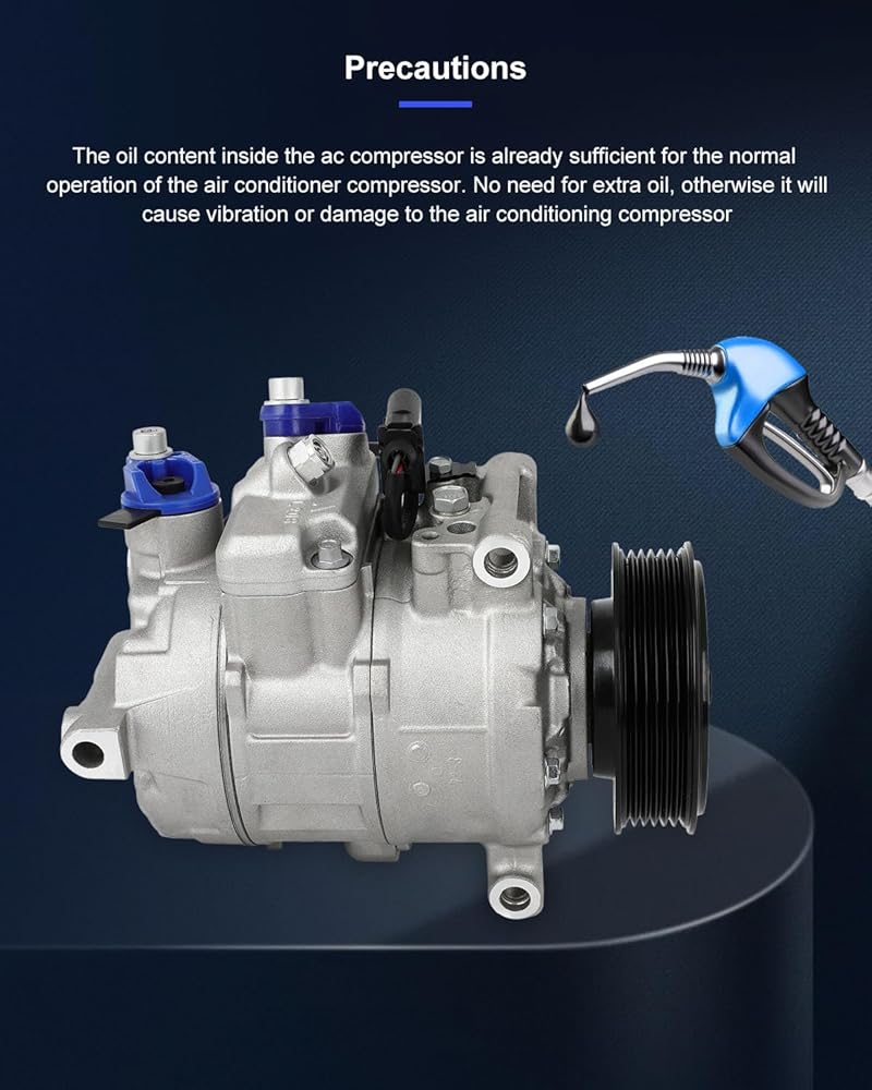 ❅WHAT INCLUDED - AC compressor and Clutch with the oil that was needed. All compressors are pressure tested with nitrogen for leaks to ensure their quality. Oil Type: PAG46, Internal Oil Content 130ml, Pulley Grooves: 6, Compressor type: 6SEU14C; Pulley Diameter (mm): 100