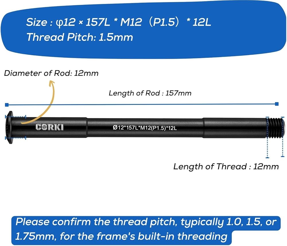 Corki Cycles Thread Pitch 1.5mm * 12mm Bike Hubs Thru Axle Adapter Boost Forks (12mm x 117/120/121/123/126/128/130/135/142/157/162/165/168/171/175/181mm) for Rod MTB Grave Bicycle Front Rear Wheel