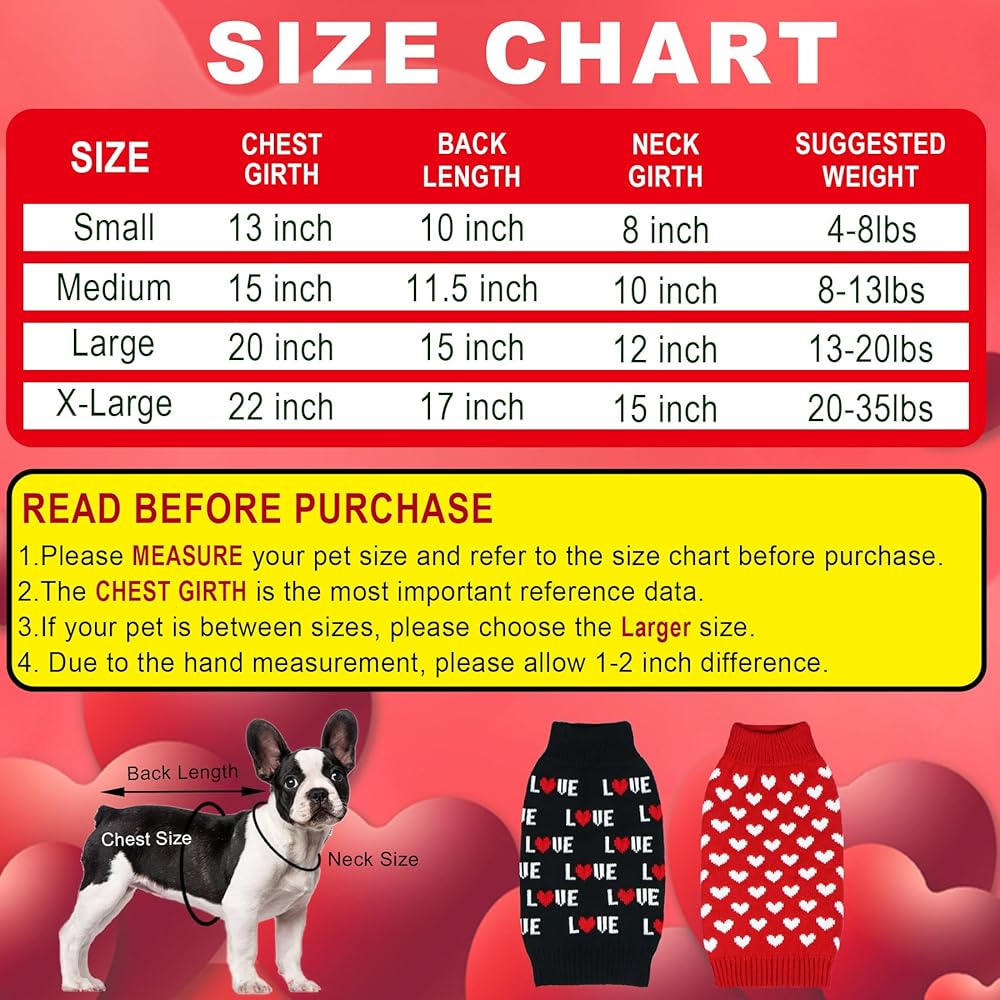 Wide Application: The Valentines dog sweaters are ideal for dog Valentines outfits, dog Valentines gifts, dog Valentines clothes, dog wedding attire, photo shots, dog birthday gifts and daily wear.