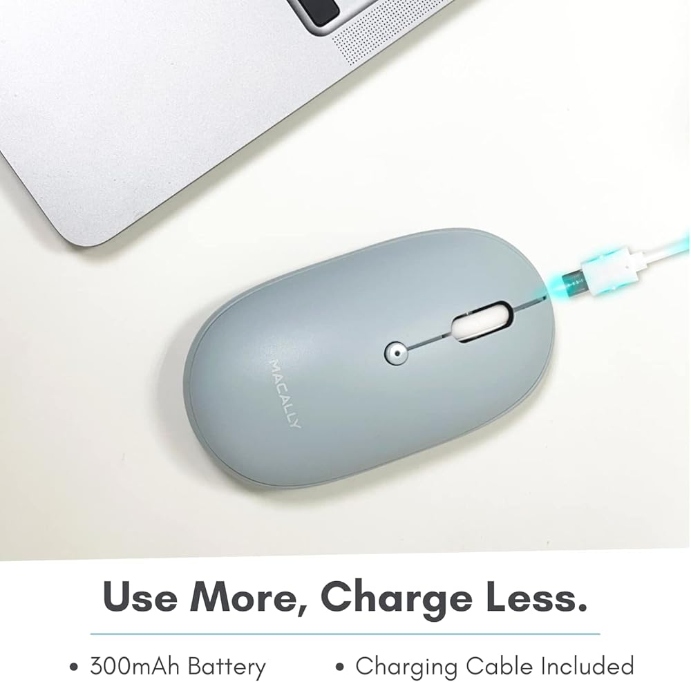 Macally Wireless Bluetooth Mouse - Quiet, Comfortable, Rechargeable for MacBook Air/Pro, Mac, iMac, Apple iPad - Wireless Mouse for Laptop, Windows PC Desktop