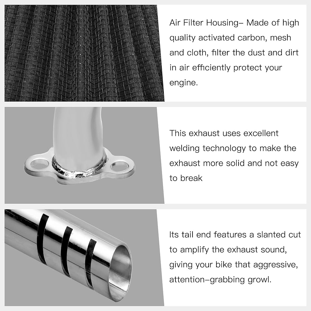 【Upgraded Exhaust】Better durability than other pipe, the flange and pipe are welded using advanced TIG welding techniques on both the inner and outer sides, make maximum stability during high-intensity riding and heavy vibrations.
