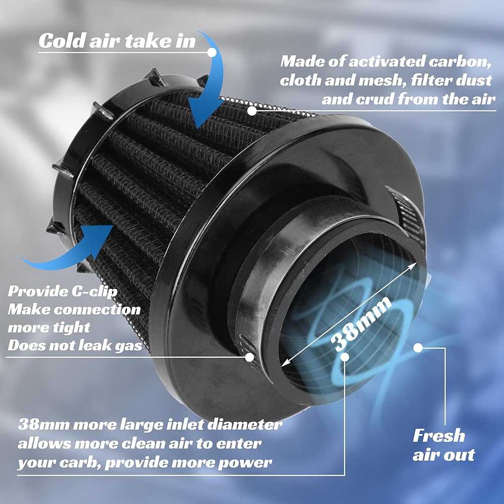 【High Performance 】It's easy to upgrade your engine of go-karts and mini bikes use our Predator 212 Performance Parts.The 38mm large air filter let larger volume of clean, dust-free air enters the carburetor and make this the atomization effect carburetor is more stable, it helps improve engine performance and make your bike burst into powerful power to conquer all kinds of terrain.