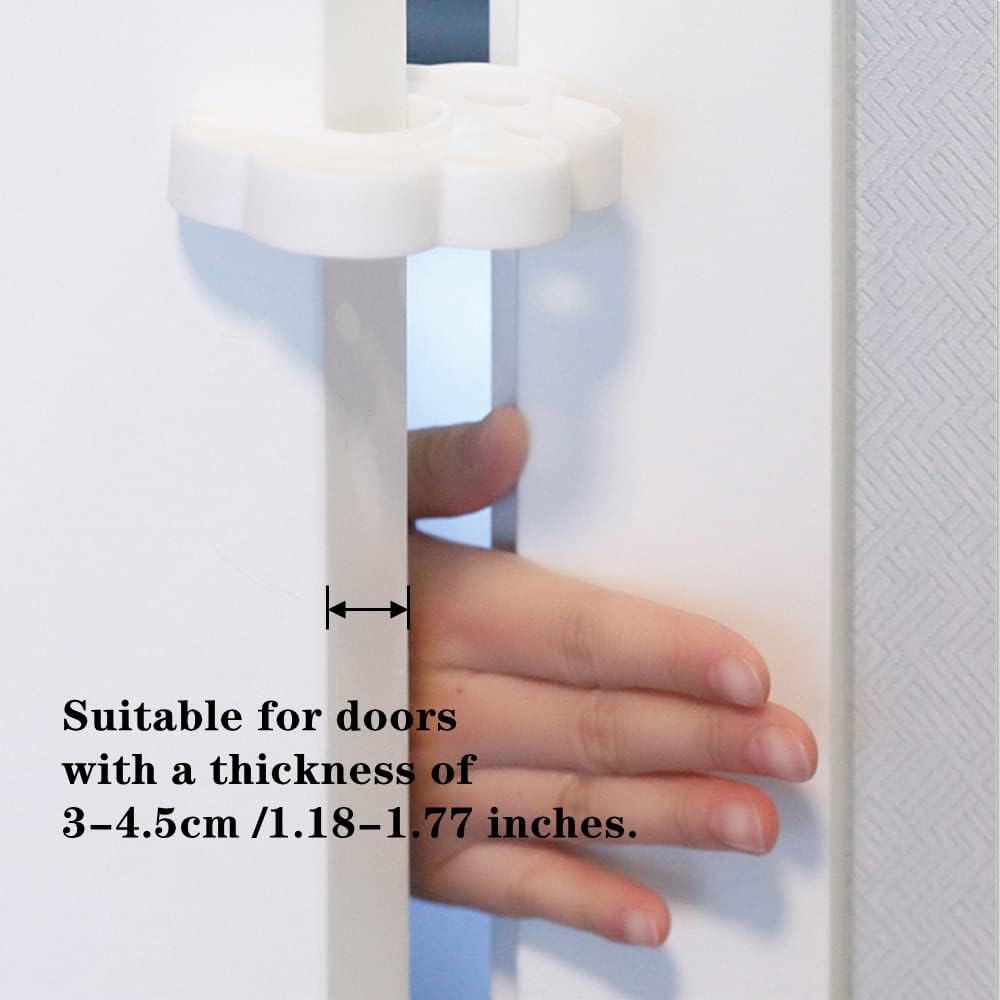 Excellent material: Made of high-quality TPR material, safe and harmless, soft and collision-proof, pressure-resistant and durable. Size: You will receive 2 pieces of white safety door guards, each of which is about 10.2*7.8*1.6 cm /4.01*3.07*0.63 inch. Unique design: Cartoon cat's paw is used as the design, which is lovely, simple, elastic and tough. It not only protects the safety, but also does not damage the door surface, and adds a pleasant atmosphere to life. Easy to use: This safety gate can be installed without any tools. Put the safety door on the top or side of the door for use. If you don't use it, just remove it directly, which is very easy and convenient. Reusable Wide application: This safety door has good universality and is suitable for most doors on the market (3-4.5 cm /1.18-1.77 inch doors). Whether it is opened inward or outward, it can prevent the door from suddenly closing and causing unnecessary harm, especially for the protection of the baby.