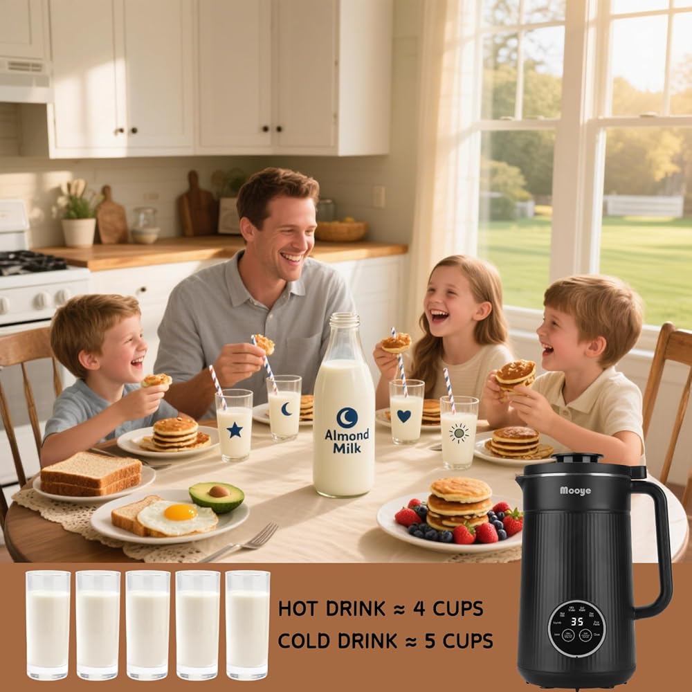 🥛Accessories Inckuded: 1* almond milk maker, 1* cleaning brush, 1* power cord, 1* measuring cup, 1* instruction manual are included. Learn how to make different types of nut milk with the Mooye milk recipe book! Welcome to share your recipe.
