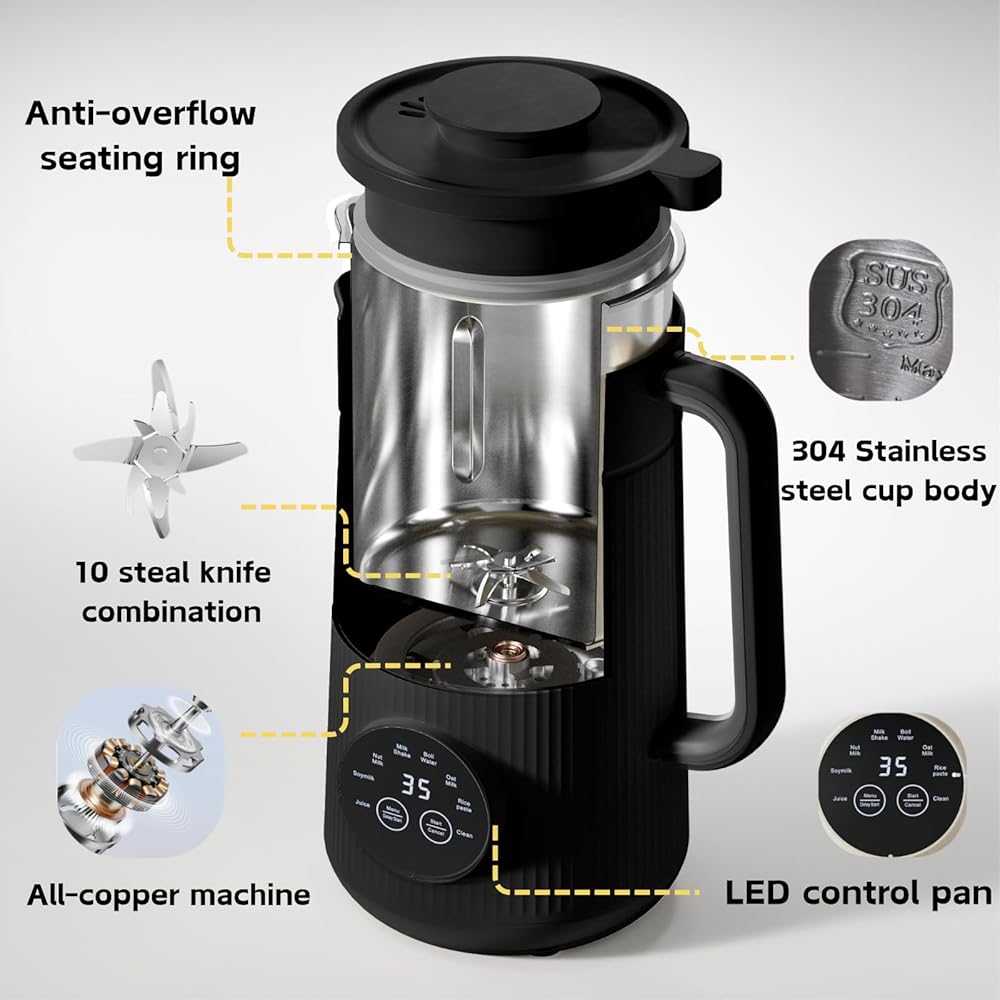 🥛Upgraded 10-blade 3D Design: The soy milk maker machine is equipped with a 3-layer design with 10 durable stainless steel blades which can ensure a smooth taste in your beverage. Suggest using our filter bag to get a better flavor.