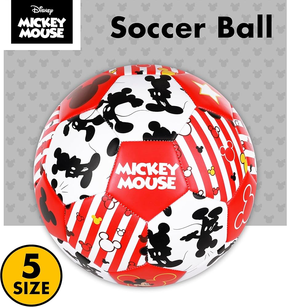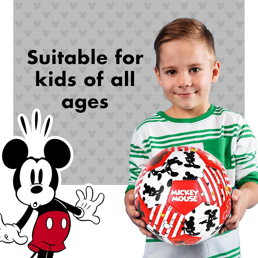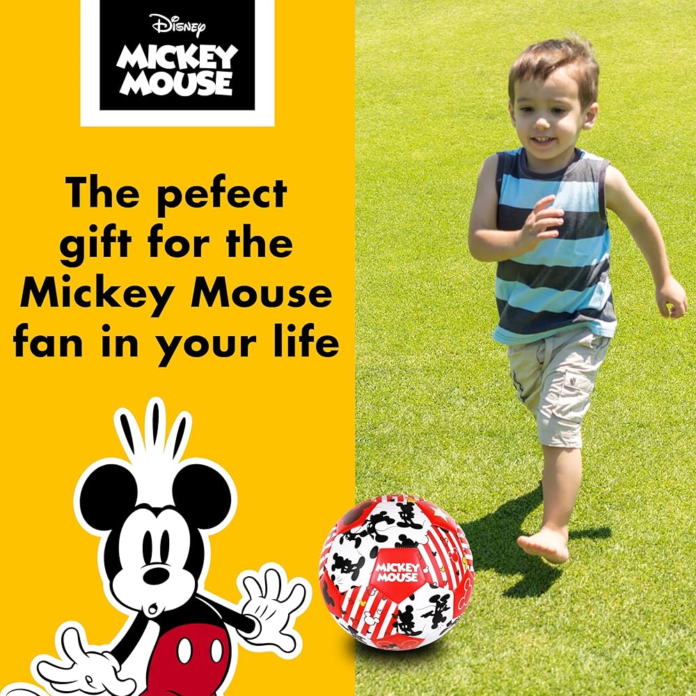MICKEY MOUSE SOCCER BALL: Soccer ball measures 8 inches in diameter and is decorated with Mickey Mouse imagery is perfect for indoor and outdoor play for kids and youth