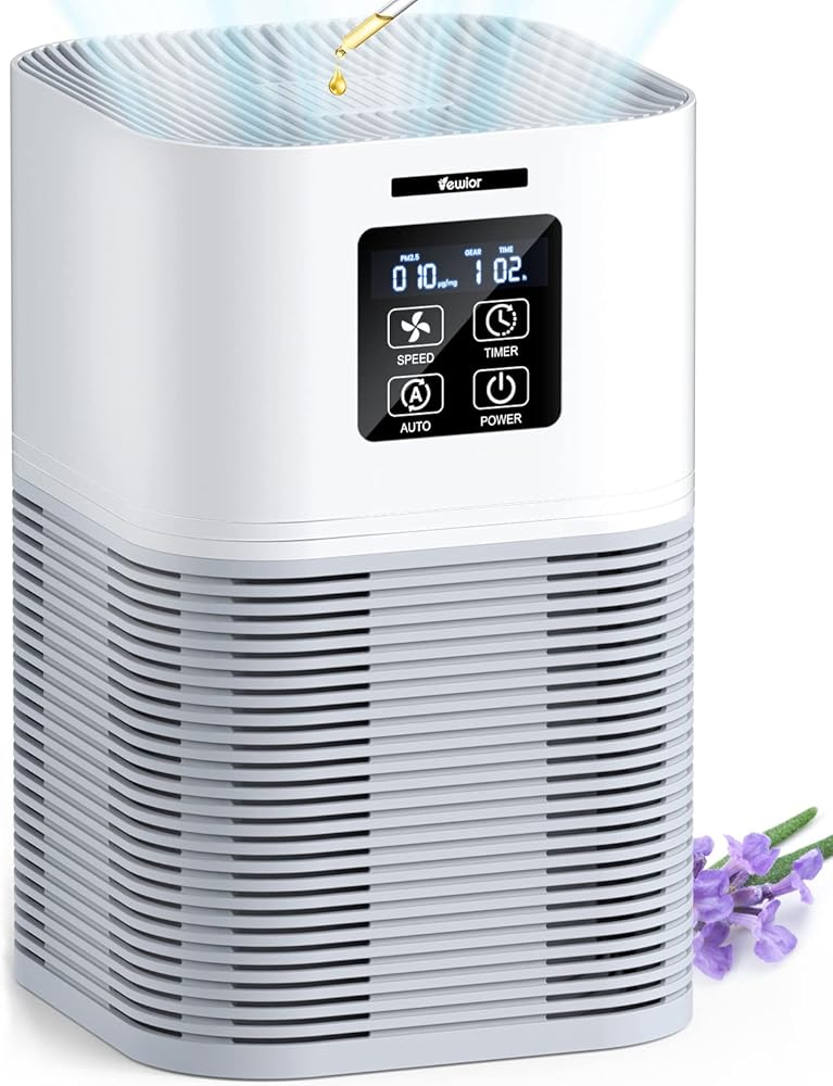 Air Purifier, Home Air Cleaner For Bedroom Large Room up to 600 sq.ft, VEWIOR H13 True HEPA Air Filter with Fragrance Sponge 6 Timer Settings Quiet Air Purifiers for Pets Dander Odor Dust Smoke Pollen