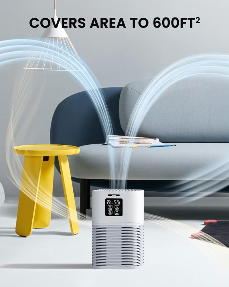 Efficient Purification & LED Touch Panel: Desk room air purifier can purify the air 5 times per hour in a room of 600 sq.ft / 55m², effectively improving indoor air quality. Air purifiers for home large room has a high-resolution LED touch panel and can display PM2.5, gear, and timer. Modern design fits in any space from small to large rooms, bedrooms, living rooms, offices, nurseries, kitchens, and basements.