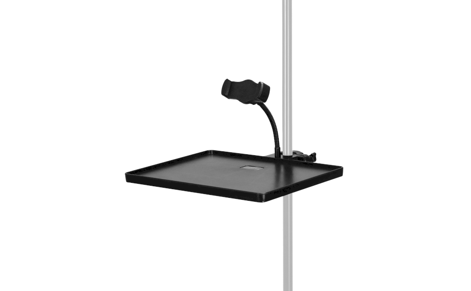 Wide Spplication: Whether on stage, in a recording studio, home studio, theater, office, lecture hall, classroom, or meeting room, this clamp-on utility tray adapts to your environment.