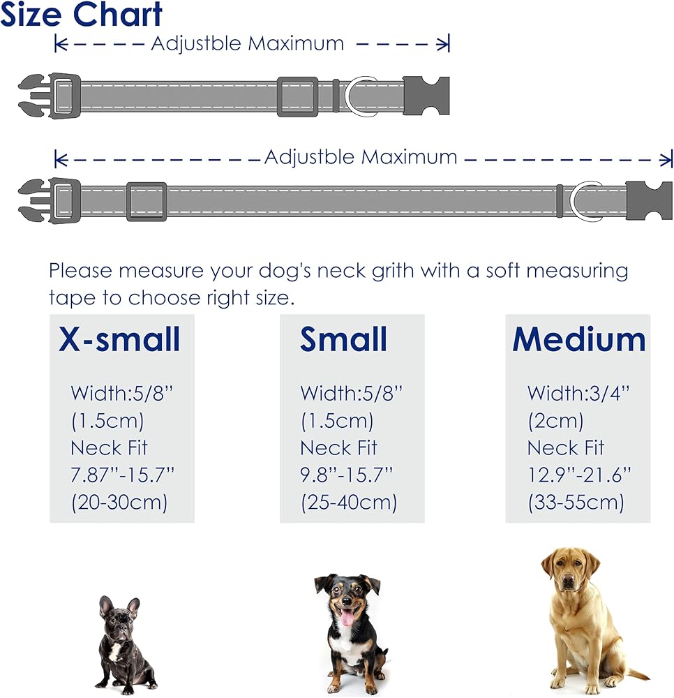 【Size-Adjustable Puppy Collar 】We provide dog collars in 4 sizes, suitable for large, medium and small dogs. The strong buckle and sliplock can easily adjust the size of the collar to match the dogs at different stages of growth.