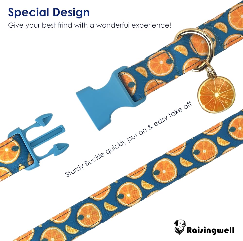 Cute Dog Collar Fruit Orange Pattern for Boys and Girls Holiday Dog Collars Summer Fall Gift Adjustable for Small to Medium Breed Dogs (Fruit Orange, XS)