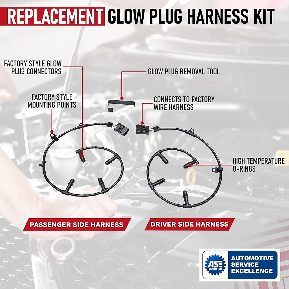 REPLACES PART# - Replaces OEM# 5C3Z-12A690-A and 4C2Z-12A690-AB. Easily change your 6.0 powerstroke engine harness with the step-by-step installation video provided after purchase. Includes BOTH LEFT and RIGHT wire harnesses as well as the glow plug removal tool, which allows you to easily remove the factory connectors from your 6.0 glow plugs.