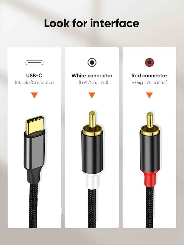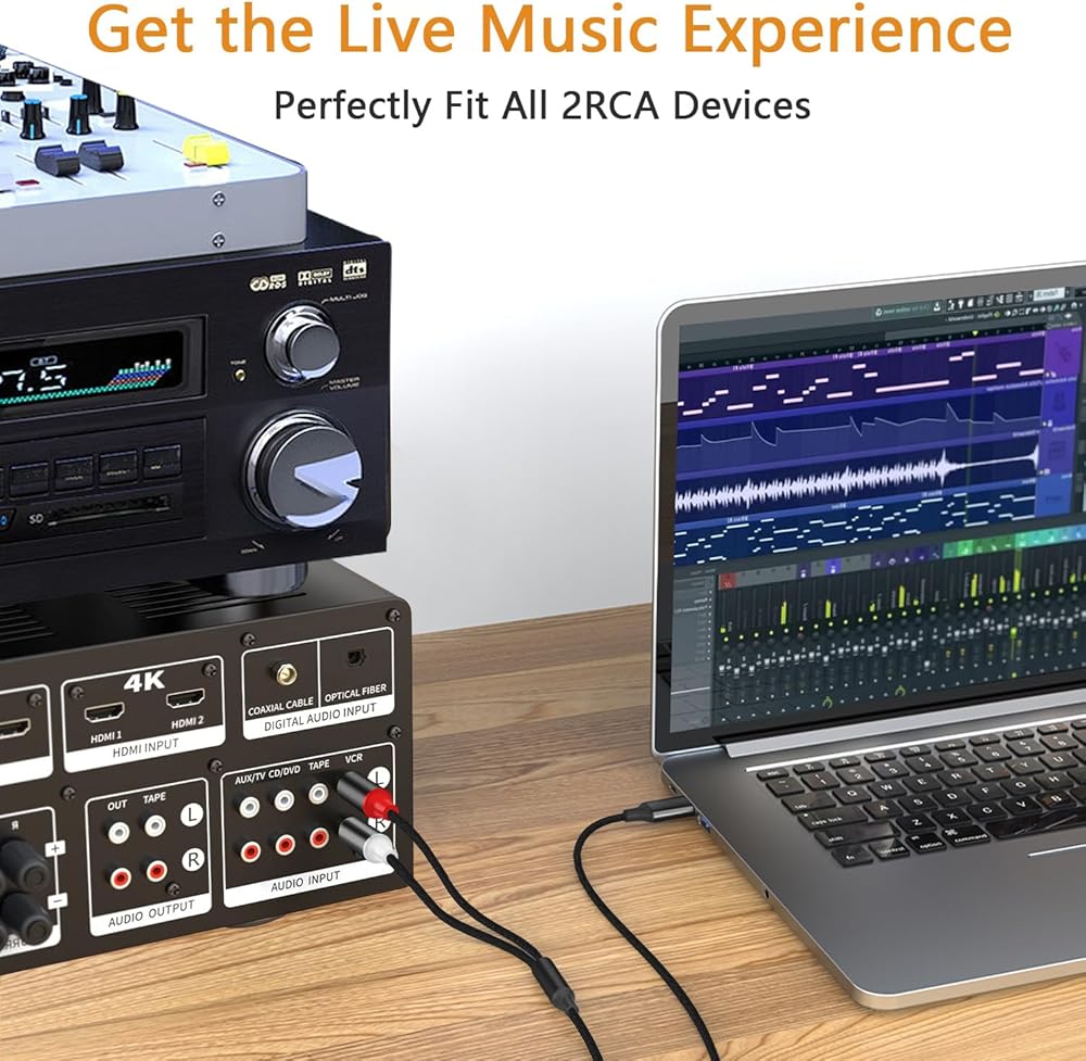 Package Content: 1 x USB C to Dual RCA Audio Cable