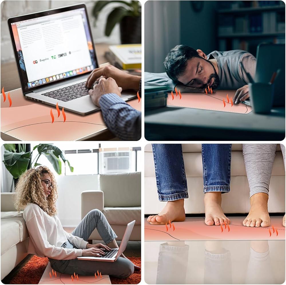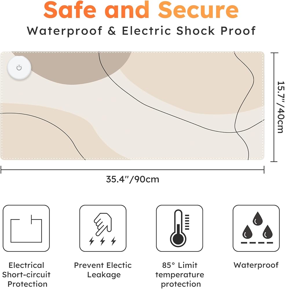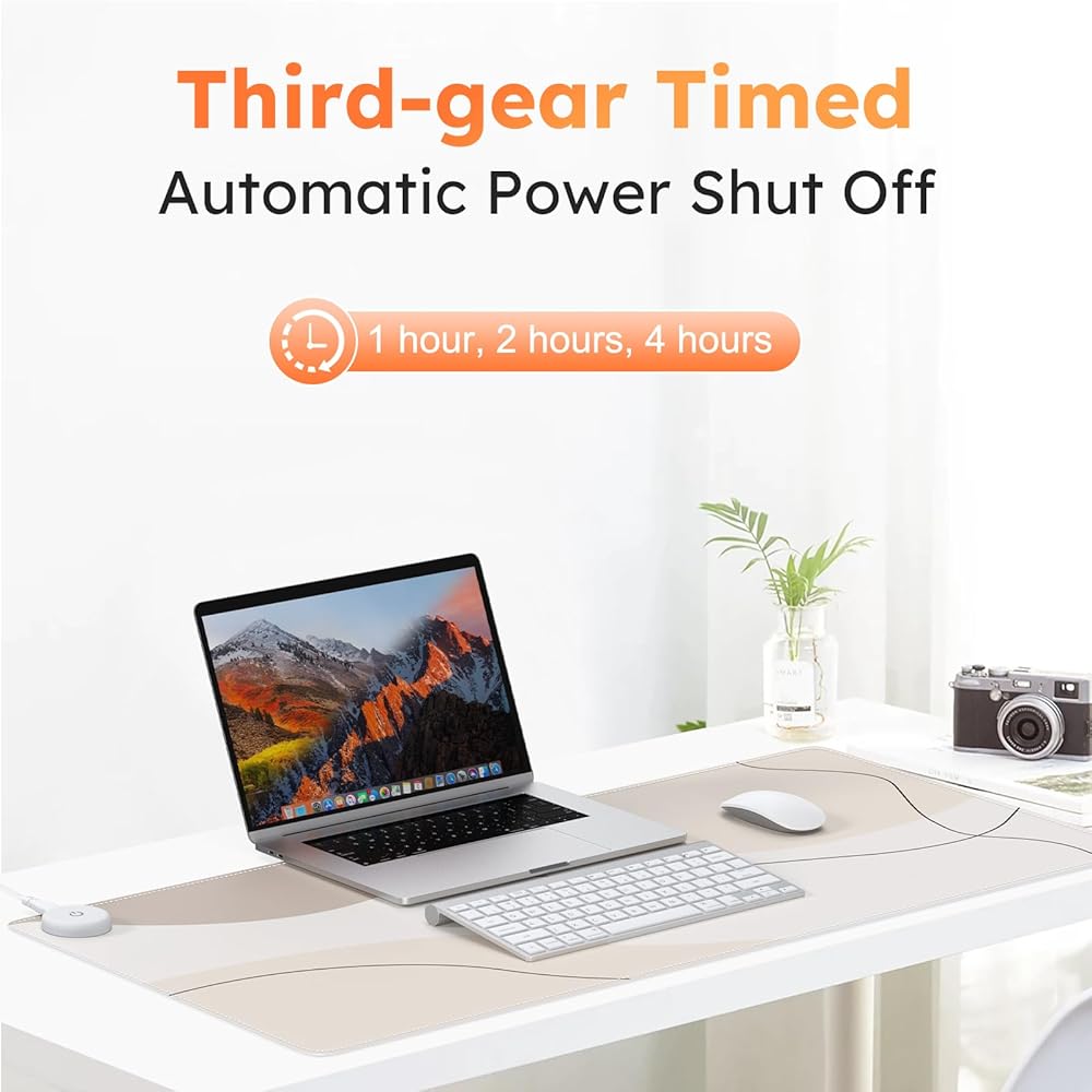 【3 Control Levels】Heated desk pad for keyboard and mouse. The heated mouse pads has 3 levels of temperature 38℃,42℃,46℃ (100.4℉, 107.6℉, 114.8℉). 3 levels timed Auto Shut-Off Control (1 hour, 2 hours, 4 hours). It allows you to choose the right time to cut off power according to your own needs.