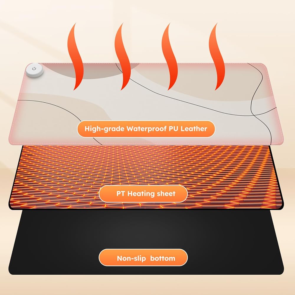【 High-quality Material】Desk heating Pad is made of premium materials, waterproof smoothly PU leather surface and non-slip base, with stitched edges.