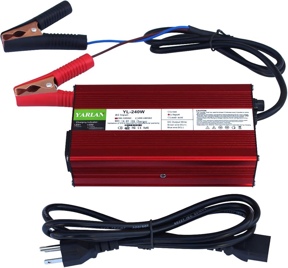 With a constant current of 10A and a constant voltage around 14.6V, it's Ideal for LiFePO4 batteries 20 amp hours and above. Only needs 5 hours of fast charging time to fully charge a 12V 50Ah LiFePO4 battery compared with 3 amps multi-charger which needs 17 hours to fully charge a 50Ah battery.
