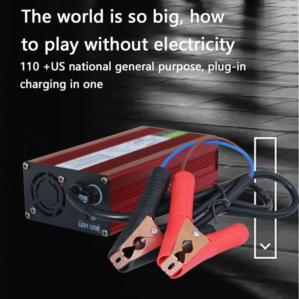 Our LiFePO4 lithium batteries charger is made of aluminum alloy with surface oxidation treatment, high hardness, anti-oxidation, the built-in cooling fan keeps the charger itself cool. Heat dissipations protect your charger and battery. It's safe in charging.
