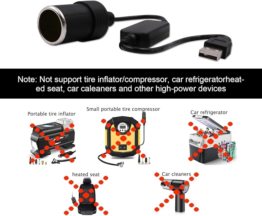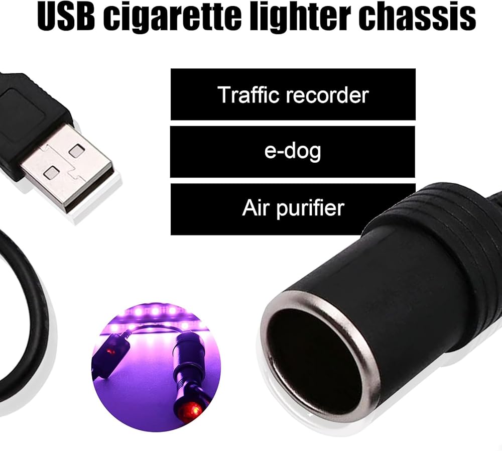 🚖 Simple Installation: One end of the car cigarette lighter socket adapter is a usb socket, which can be directly plugged into the corresponding socket. The other end of the car cigarette lighter socket adapter is the female cigarette lighter seat. The input pressure of the car cigarette lighter socket adapter is 5V. The output pressure of the car cigarette lighter socket adapter is 12V.