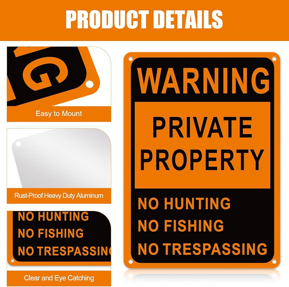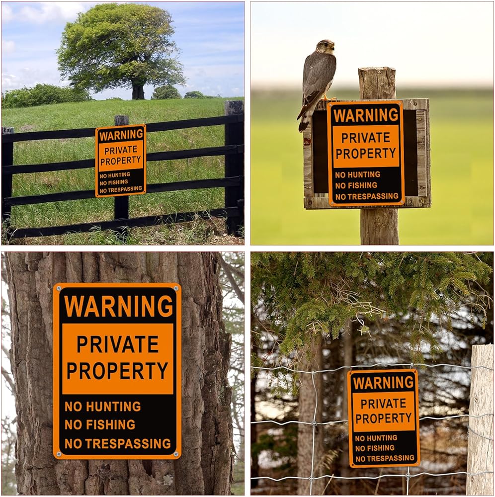 Reflective and Eye Catching Design: with a reflective effect that glows when hit with light, our posted no hunting or trespassing signs are viewable even at night; The visibility enhancement ensures anyone approaching your property knows well that it's private ground, deterring potential trespassers no matter the time of day