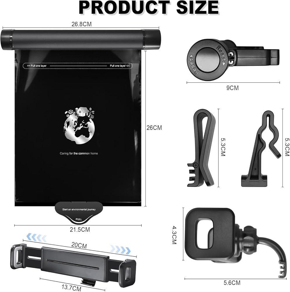 Simple Installation: The retractable garbage bag with roller transmission can be easily pulled out and used by simply tearing off, promoting eco-friendly and hygienic practices while adding an aesthetic appeal to your car interior.
