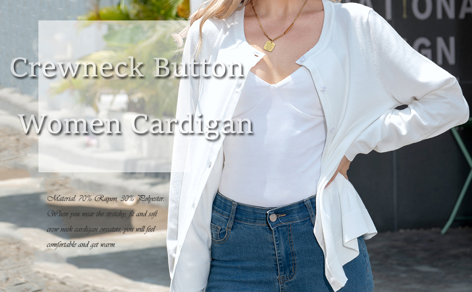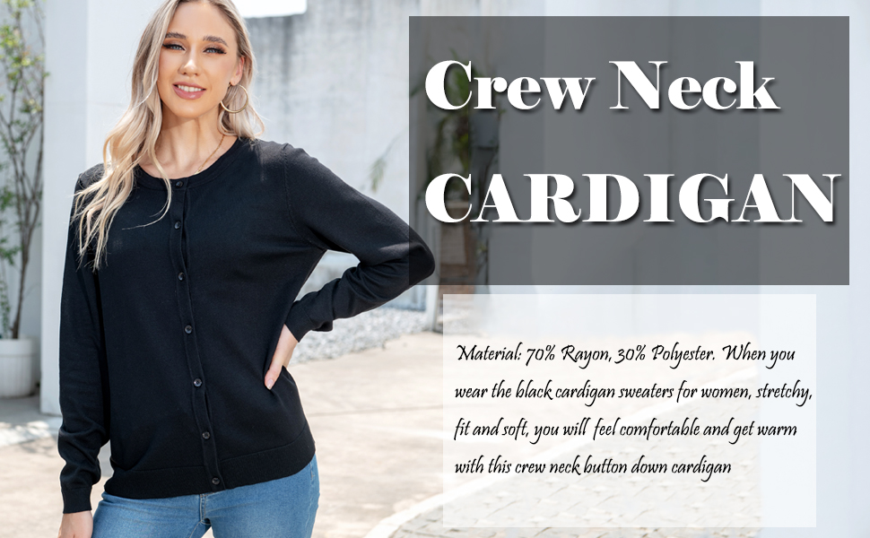 Material: 70% Rayon, 30% Polyester. When you wear the cardigan sweaters for women, stretchy, fit and soft, you will feel comfortable and get warm with this crew neck button down cardigan