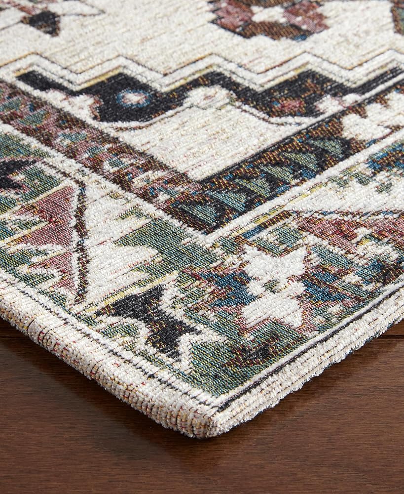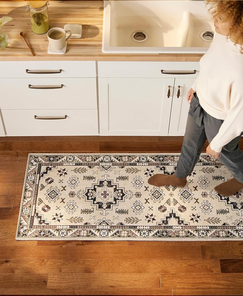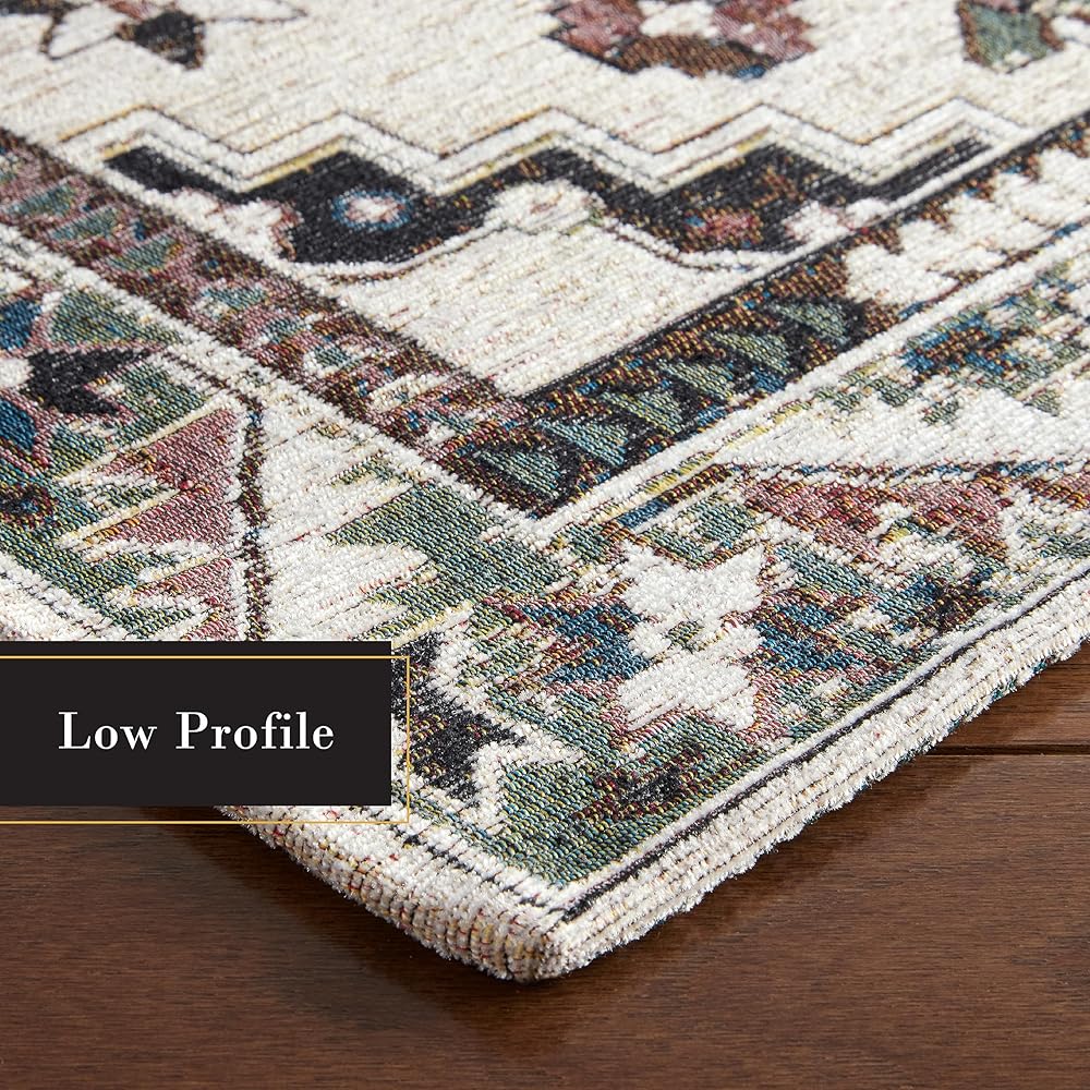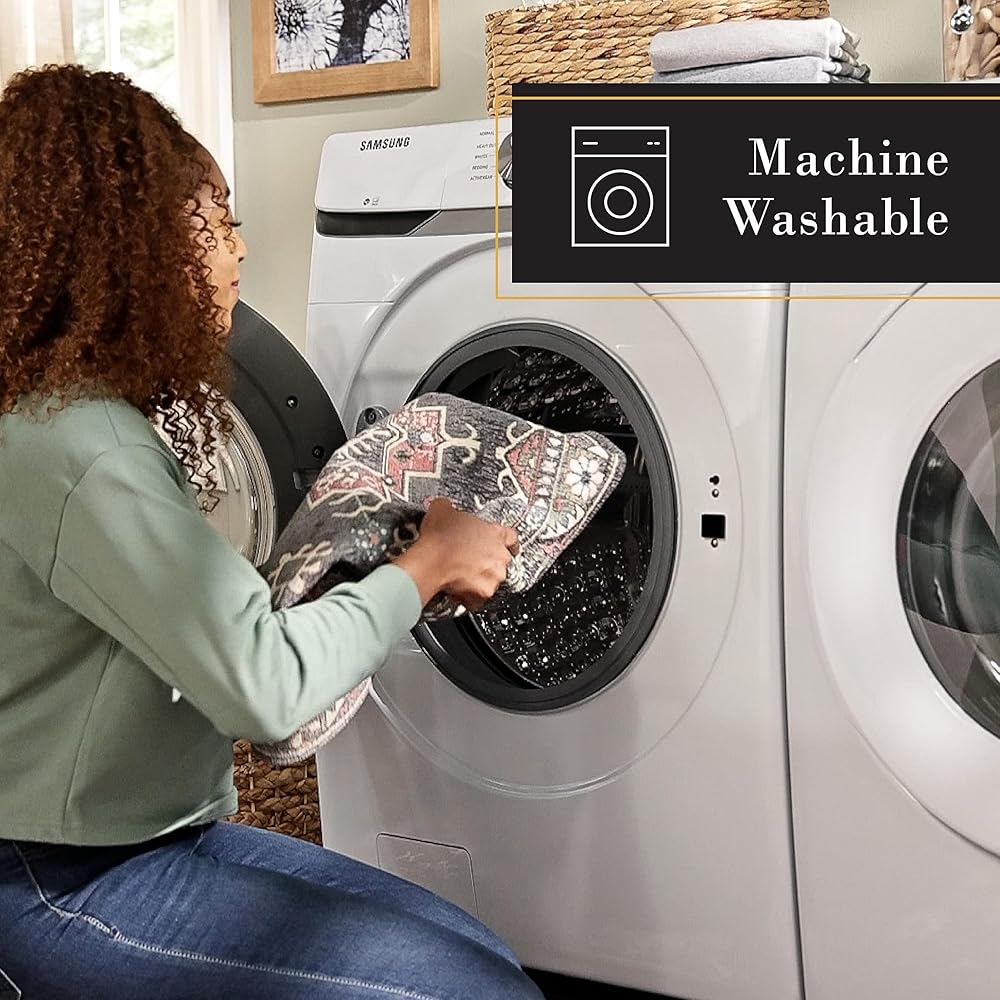 The Livie Everwash™ Machine Washable Multi-Use Decorative Rug is a perfect addition to your home. Use as a kitchen rug, low-profile door mat, in a hallway, or as a bedroom rug to instantly update your space. This decorative rug is expertly crafted from a blend of 90% Jacquard Woven Polyester and 10% Cotton, ensuring both durability for high-traffic areas and a touch of luxurious softness. This machine washable rug, complete with a non-slip latex backing, seamlessly combines versatility and style, making it the perfect multi-purpose mat for adding sophistication to any room in your home.