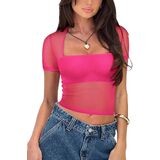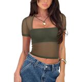🌸Design: Square neck tops with tube top look, REORIA Butsmooth Fabric covers up chest and see through mesh reveals shoulders and back, this sheer tops well made, light weight and stylish.
