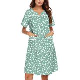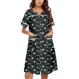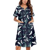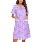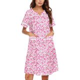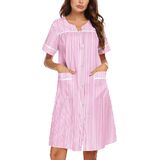 Ekouaer Women's Sleepwear Snap Front Cotton Nightgown Short Sleeve House Dress S-3XL