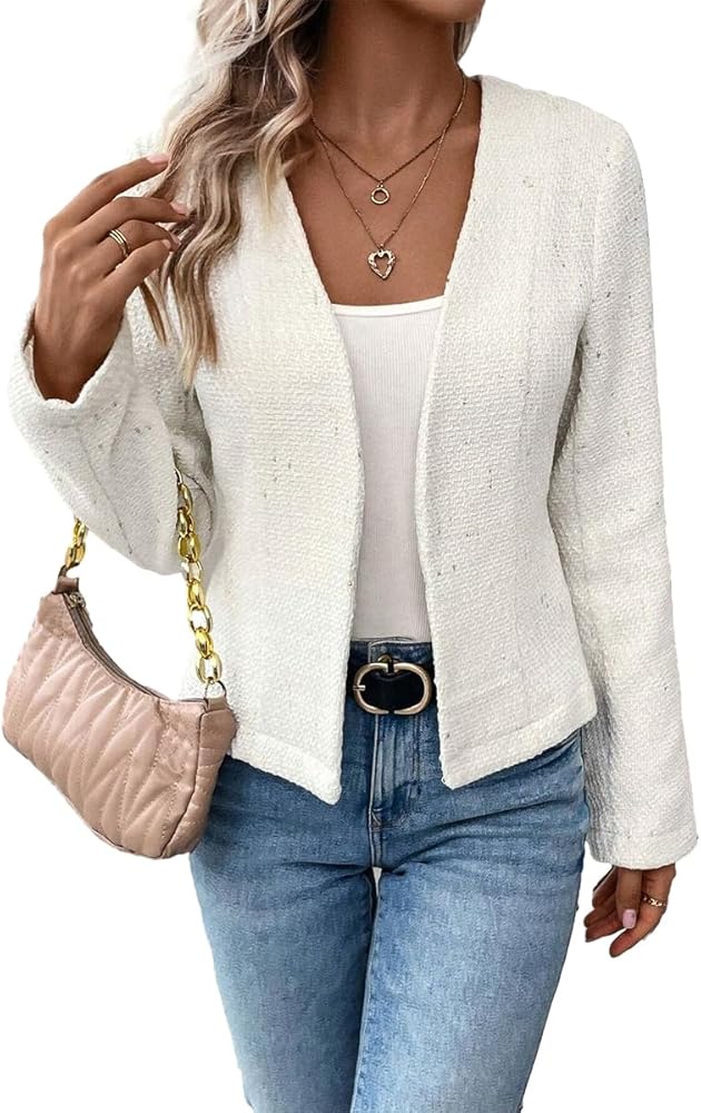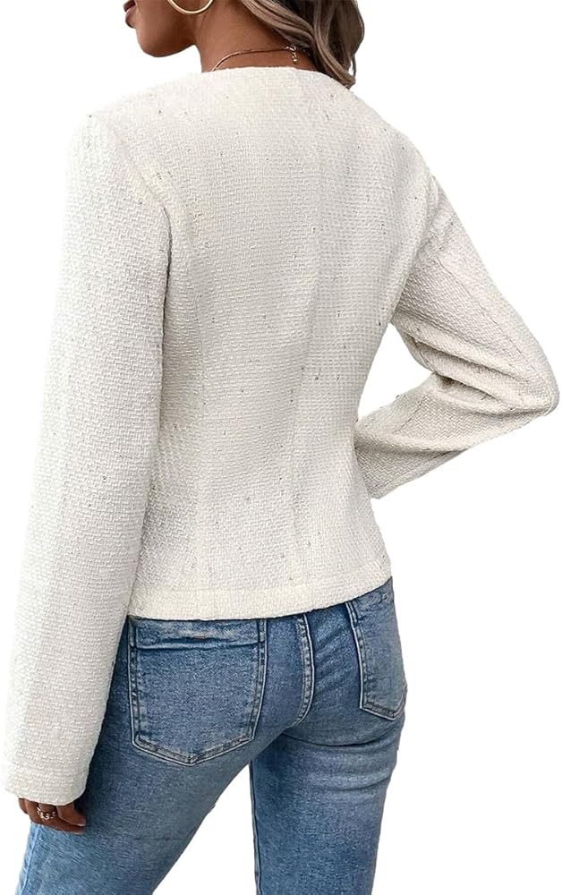 Features: This petite blazers for women features Collarless Design, NO pockets, Slim Fit jacket, Open Front, Solid Color, Long Sleeve, Tweed Fabric, Wont't Wrinkle, Cardigan Sweaters For Women, Easy to Wear, Elevate every outfit.