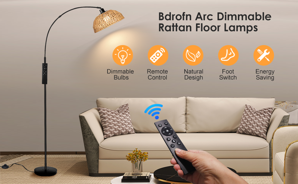 Adjustable Color Temperature and Stepless Brightness: The Arched floor lamp not only has stepless brightness adjustment but also has stepless color-adjustable temperature settings. Cold White, Natural White, and Warm (from 3000K to 6000K). Natural lights can bring you sweet nights, while cool lights can help you focus on reading. Warm light mode is suitable for sleeping. You can also use the remote control to dim or brighten the floor lamp gradually.includes a one-hour timer function for easy sl