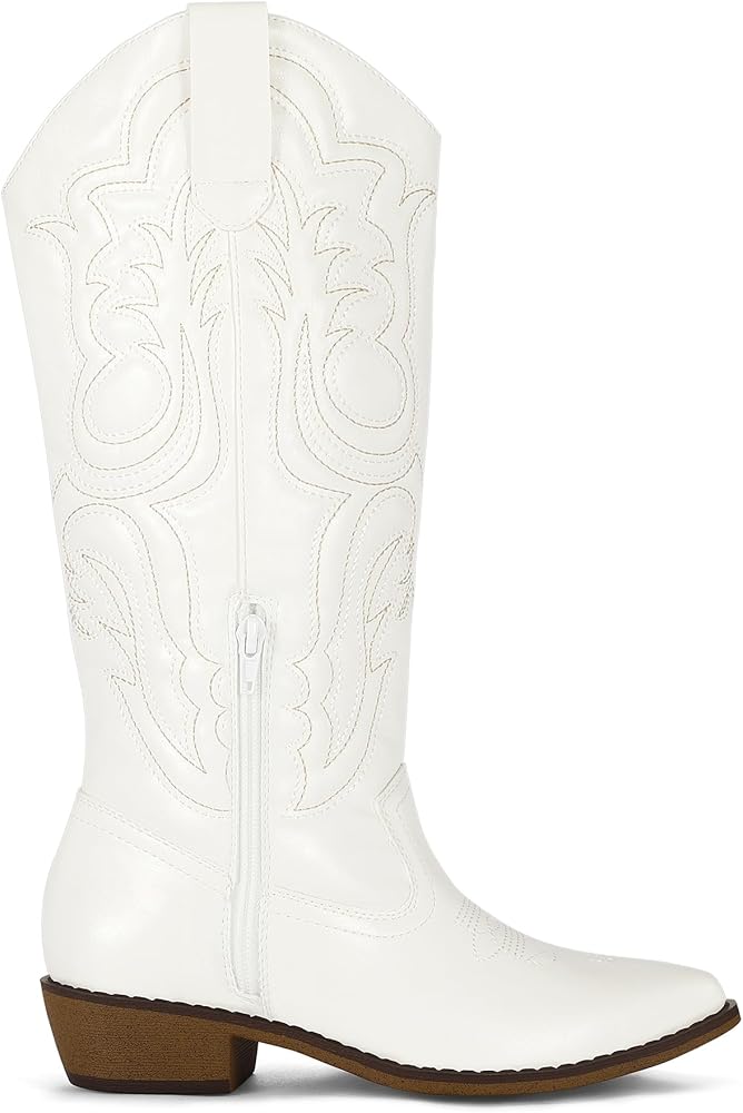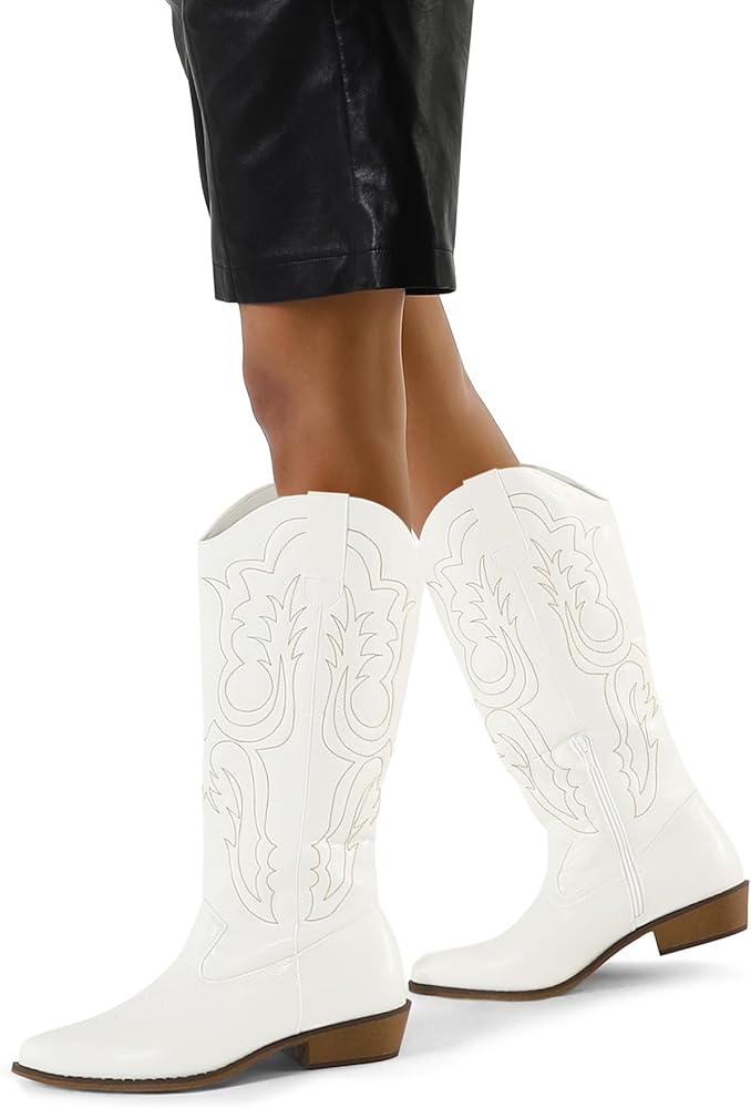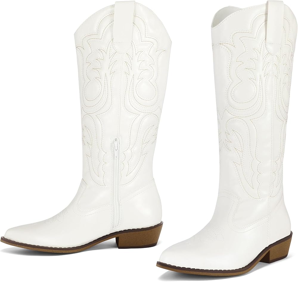 【راحة طوال اليوم】تتميز أحذية راعية البقر هذه بنظام بطانة شبكية ناعمة للتهوية مع إسفنج يحتفظ بالشكل ونعل داخلي مبطن سيحافظ على راحة قدميك طوال اليوم. أحذية طويلة حتى الركبة مع عروات سحب جانبية وسحاب داخلي يمكنك ارتداء هذه الأحذية اللطيفة الرائعة وخلعها بسهولة.