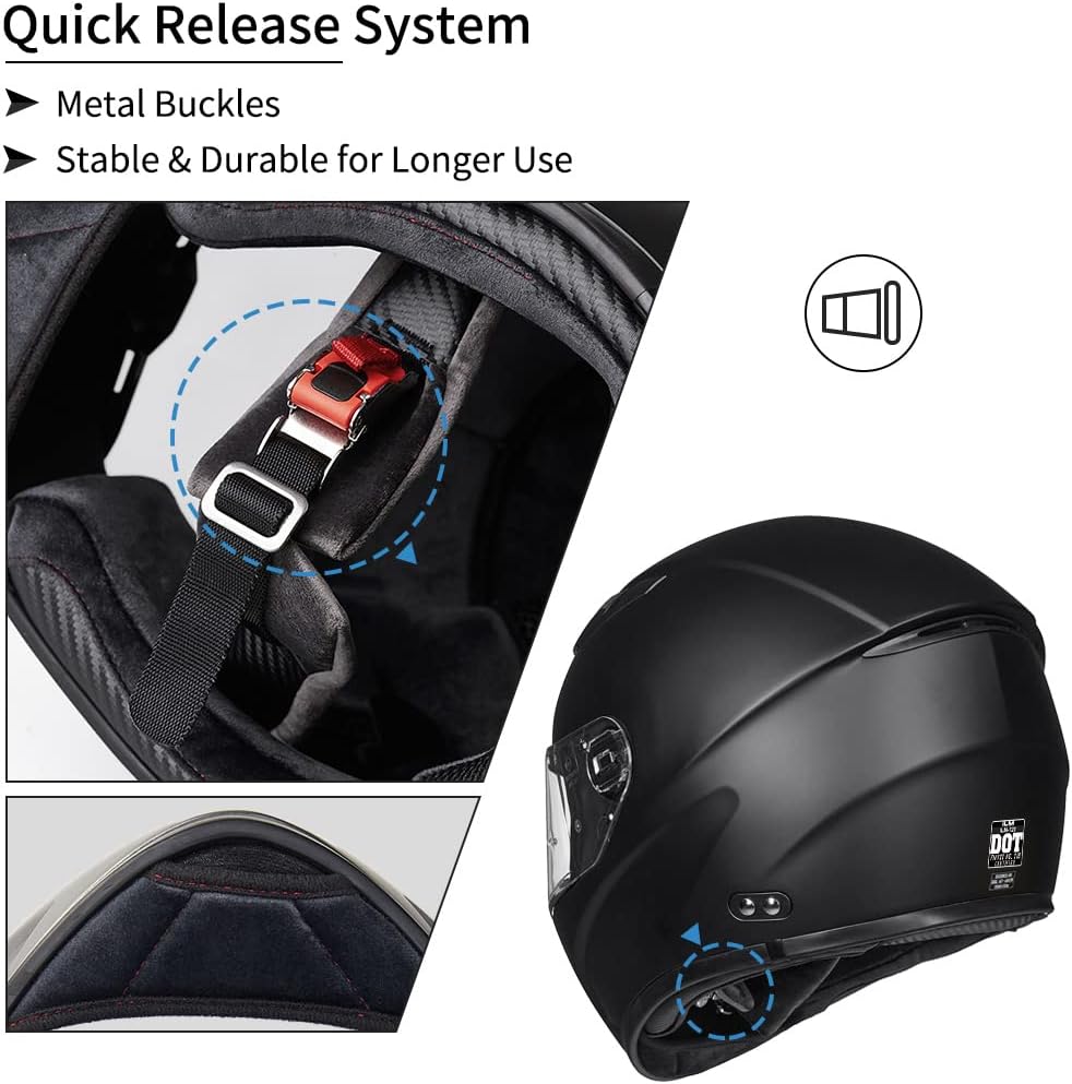 Eyewear Friendly. Quick Release Strap & Buckle. Easy to take on/off the full face helmet.