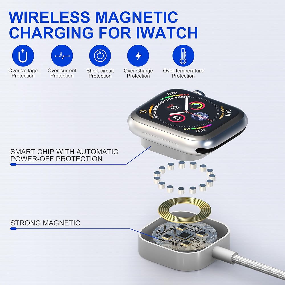 Strong Magnetic Adsorption: The apple watch charging cable USB C with strong magnetic adsorption with built-in magnet, easy to charge your watch with double chips and integrated magnetic technology. And it has built-in protection devices with safety features such as overcurrent, overvoltage, short circuit and overtemperature protection,stable and will not fall off, convenient to get a wonderful charging experience.