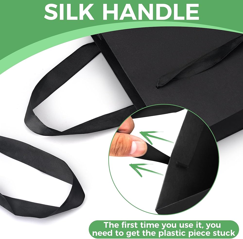 Comfortabl Silk Handles: The broad silk handles provide a comfortable grip, enhancing black kraft bags's luxurious feel. Black paper bags's elegant and chic appearance adds a special touch of sophistication to your gifts, making every occasion more memorable.
