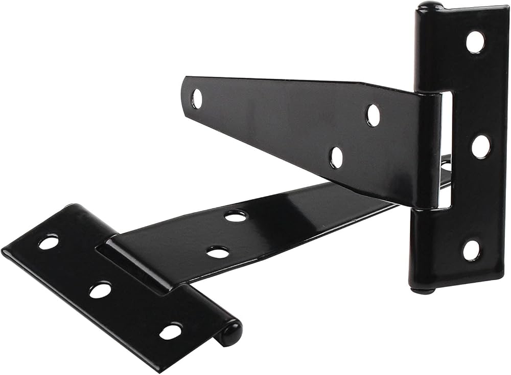 TamBee T-Strap Hinges Light Duty Barn Door Hinges Shed Door Hinges Rustic Hinges Gate Strap Hinge Door Barn Gates Hinges Black Wrought Hardware Iron Rustproof 6PCS (4inch)