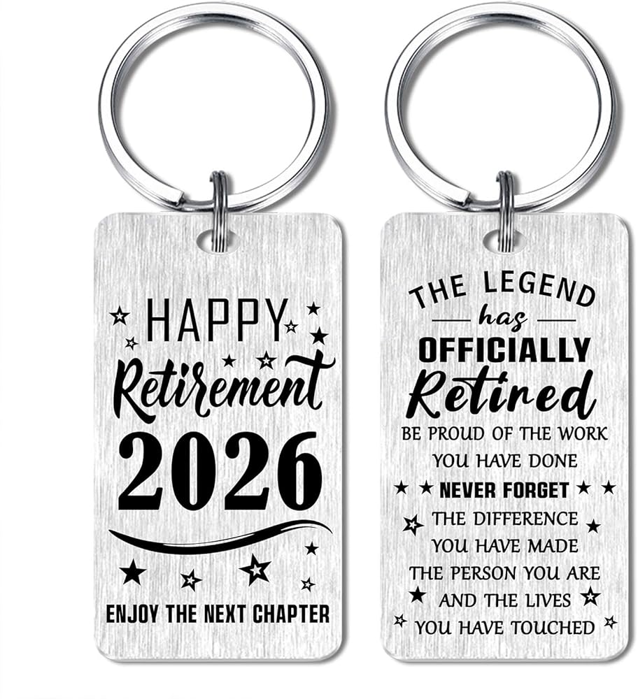 Happy Retirement Keychain - It's an exquisite retirement gift for your grandma, grandpa, teacher, employee, retired coworker, colleague, work bestie, team member, boss, leader, mentor, doctor, nurse, police, etc. Choose this inspirational keychain to him, her and wish them enjoy the next chapter! Teacher retirement gifts for women, retirement gifts for men, retirement gift for woman coworker, retirement party decorations.