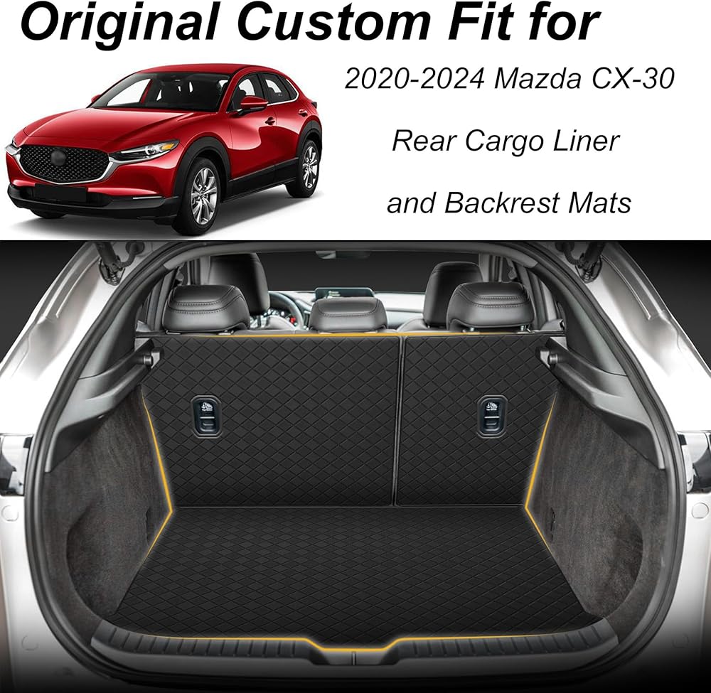 Trunk Mat and Rear Backrest Mat for 2020-2025 Mazda CX-30 - Custom Fit PU Leather Cargo Liner and Backrest Mat - All Weather Waterproof Anti-Slip Easy to Clean Cargo Mats