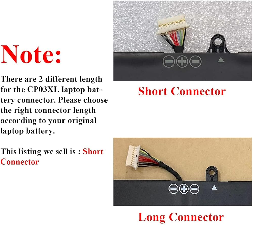 【Purchasing Note】Before you place the order, please check and confirm your laptop model, original battery model and appearance, compared with our battery image, make sure that's what you need. Especially the location of the connector and the cable length (long or short)
