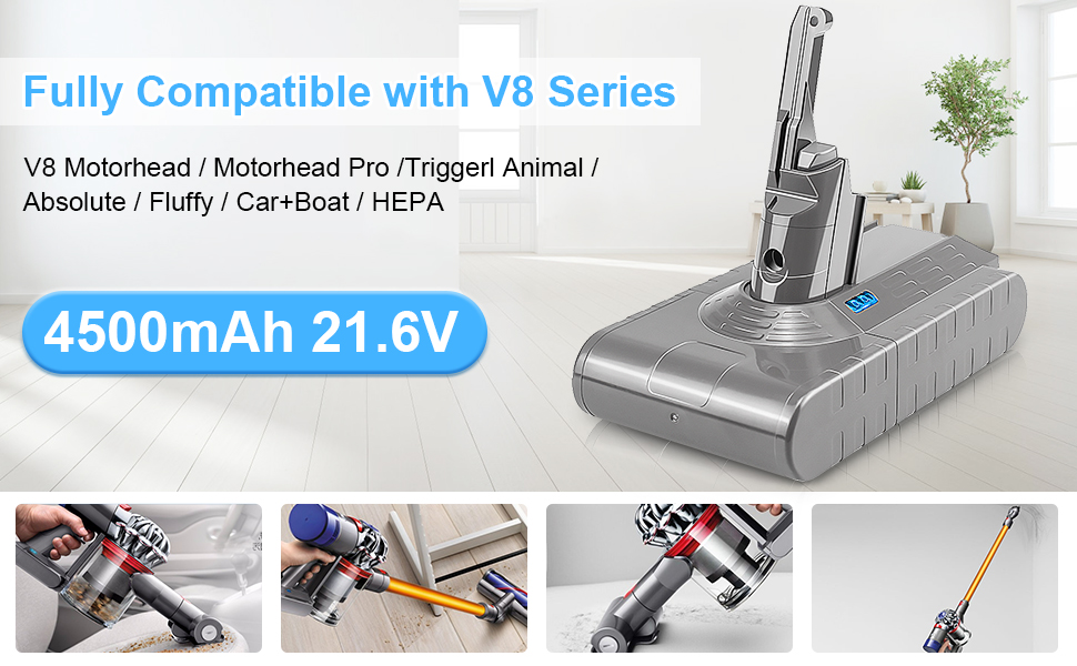 Compatibility:compatible with V8 Absolute, V8 Animal, V8 Fluffy, V8 Handheld Vacuum Cleaner, V8 Motorhead, the battery also fit for original battery charger station and wall charger.