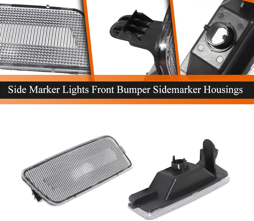 One pair (driver and passenger sides) smoke lens cover lens front bumper side marker light housing assembly.