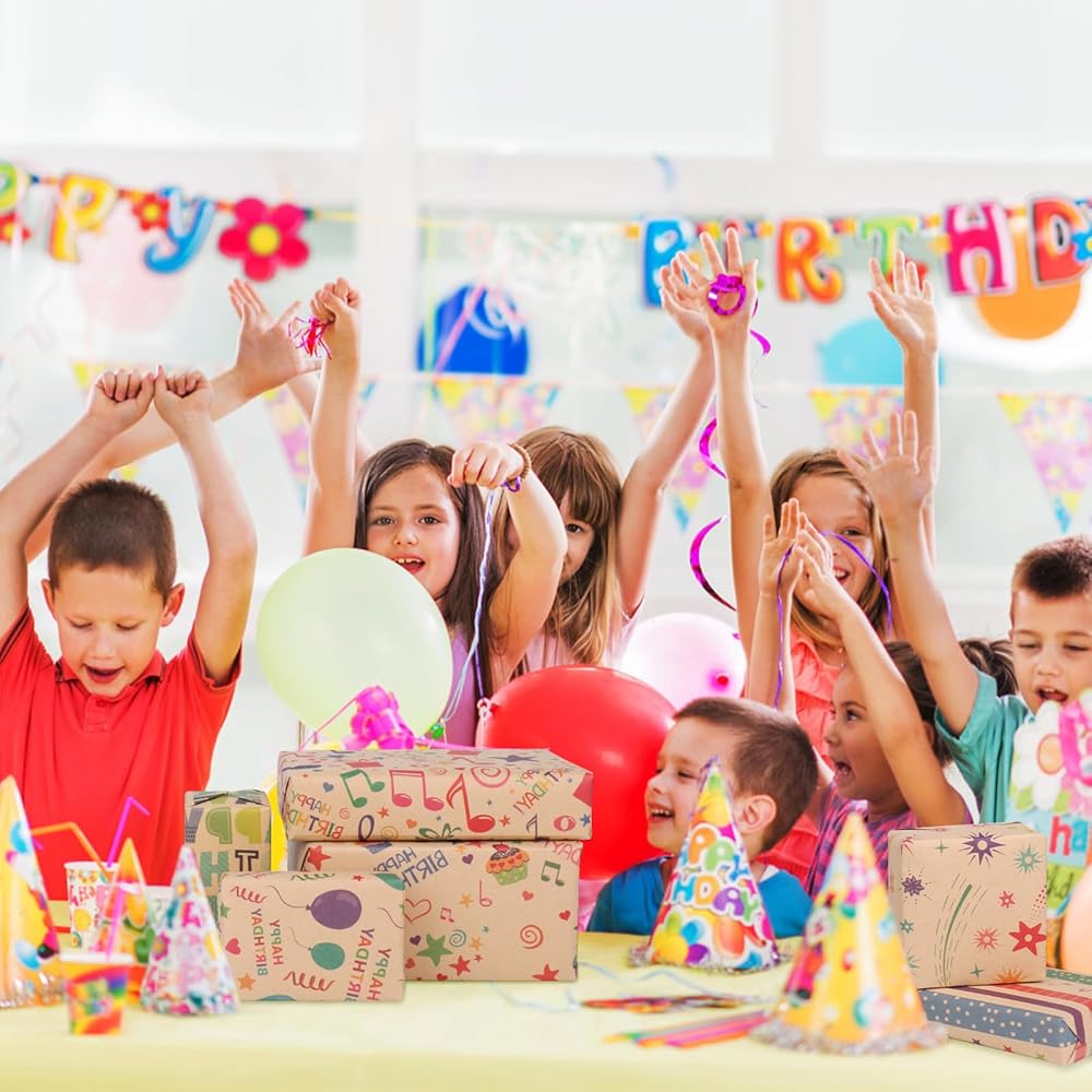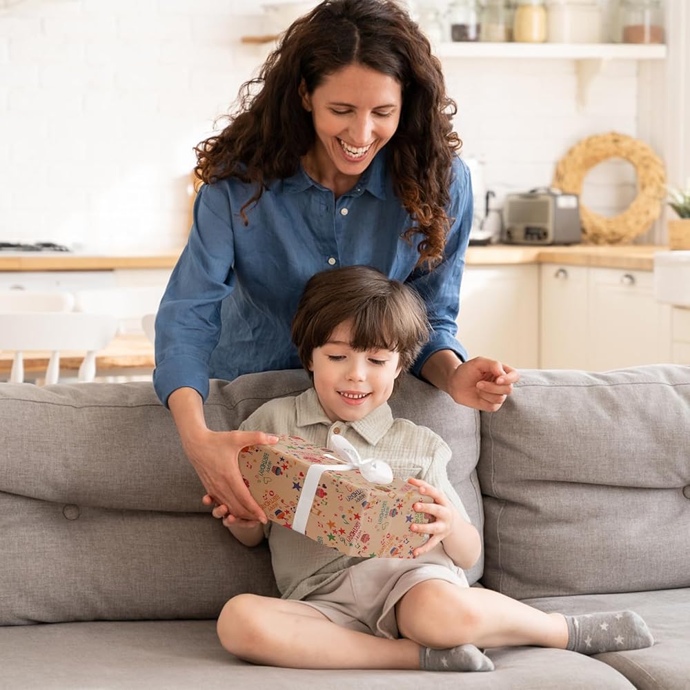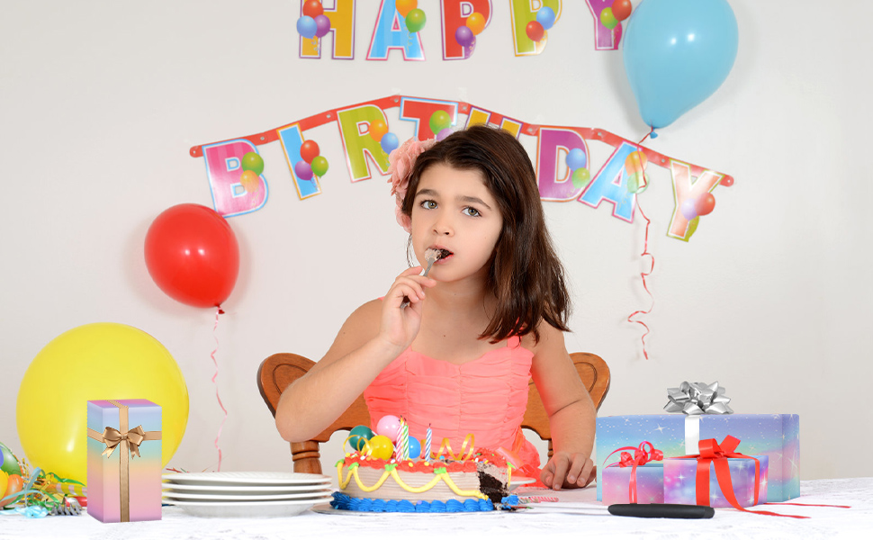 [Cutting Grid]- Printed with grey lines on the reverse side to aid cutting, this recyclable gift wrap is perfect for birthday wrapping paper kids for girls, featuring a fun and colorful design that kids will love.