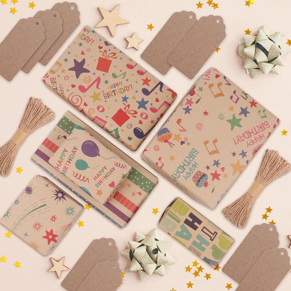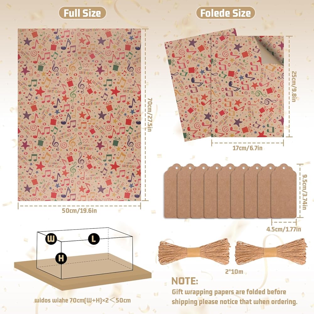 [Please Note]- Please note that Each sheet is folded for easy storage and space saving. The birthday gift wrap paper will have folds and creases, Creases can be easily hidden with a strategically placed ribbon or placed along the edge of the box being wrapped to create a neatly wrapped gift.