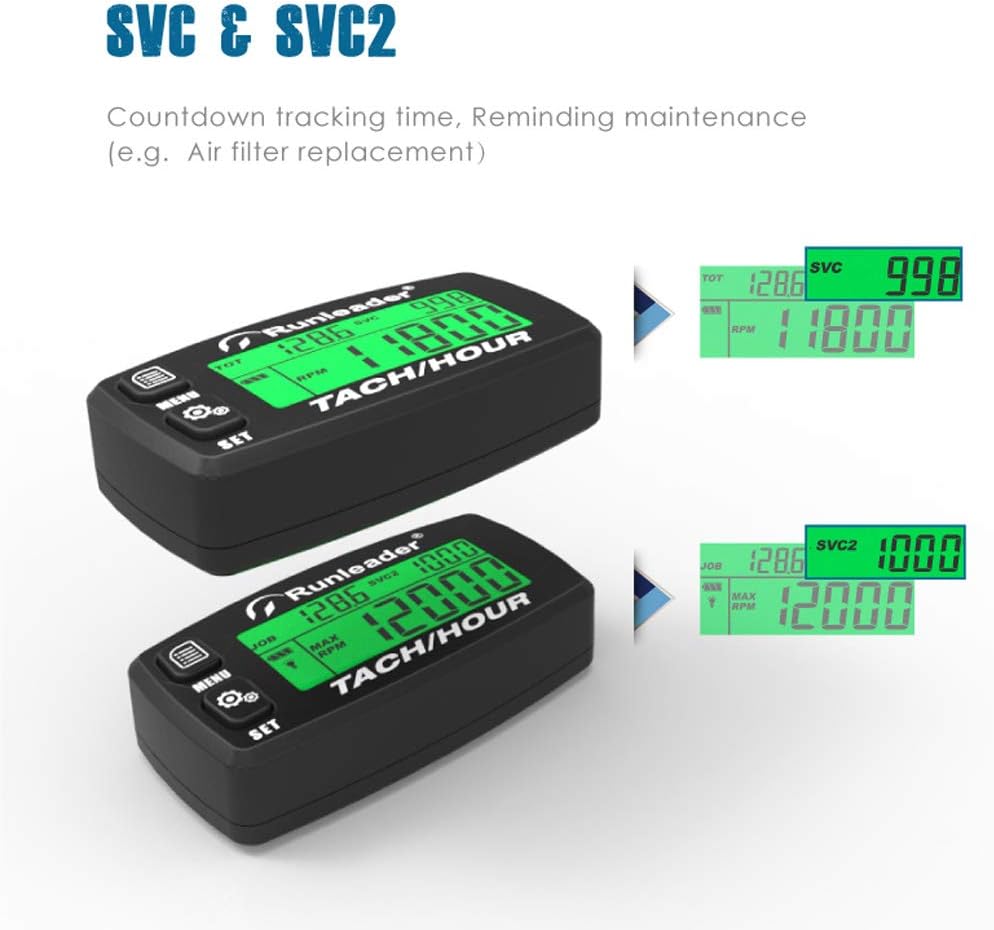 Inductive Tachometer Gauge Alert RPM Engine Hour Meter Boat Maintenance Reminder Backlit Digital Resettable Tacho Hour Meters for Motorcycle Marine Glider ATV Snow Blower (Black)
