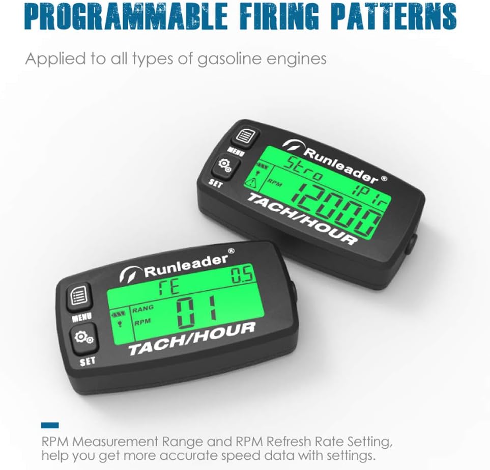 • [Scene Application]--Induction tachometer hour meter for maintenance of any 2 or 4 stroke gasoline engine, maintenance timing (1-1000H can be set) and speed detection (MAX RPM25000)